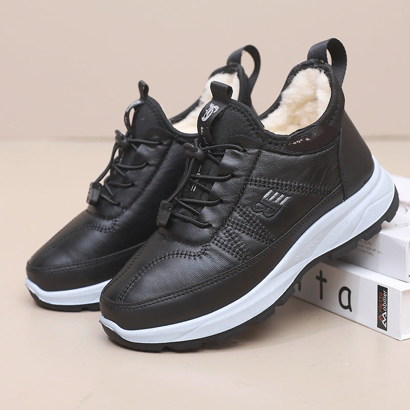 Zimowe bawełniane buty wykonane są z wodoodpornego i wygodnego materiału, który jest miękki i wygodny w dotyku , a także mocny i trwały. Aksamitna konstrukcja termiczna skutecznie chroni przed zimnem, zapewniając ciepło i wygodę w chłodne dni.