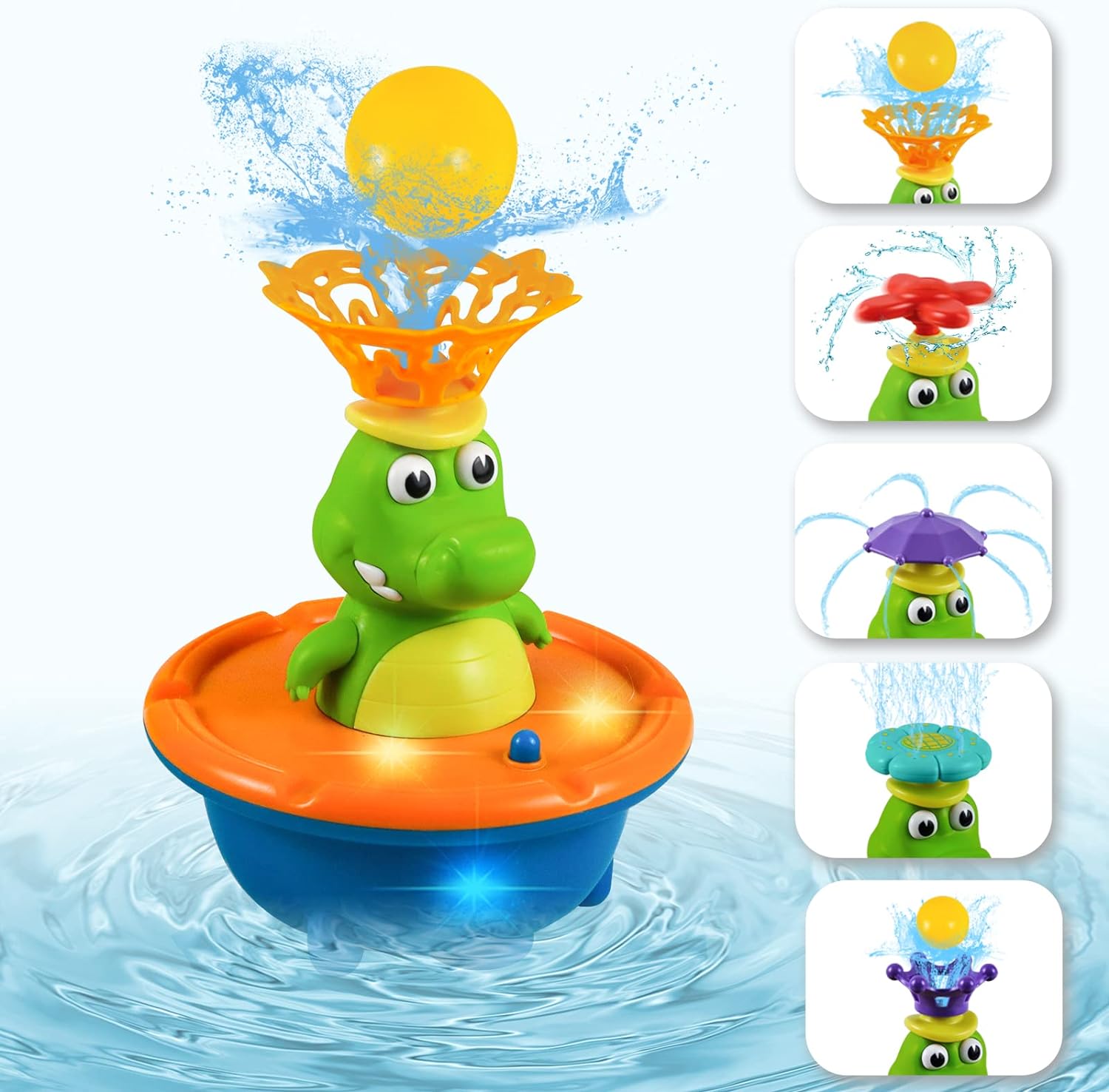 Ta zabawka do kąpieli w kształcie krokodyla ma 5 trybów: fontannę, parasol, koronę, wiatrak i fontanny kwiatowe. Migające światełka angażują dziecko, czyniąc kąpiel przyjemniejszą i łatwiejszą.
