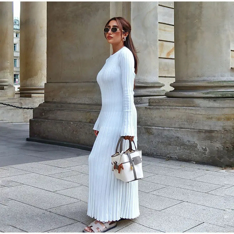 Długa, dzianinowa spódnica o dopasowanym kroju z okrągłym dekoltem
