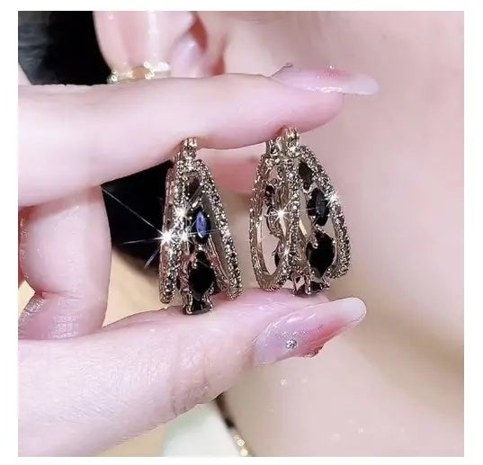 Eleganckie francuskie kolczyki z czarną cyrkonią
