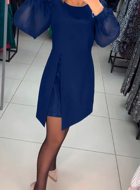 Wkrocz w elegancję dzięki naszemu Modacrest™️. Ta sukienka o linii A do kolan jest wykonana z luksusowej mieszanki bawełny i ma piękny okrągły dekolt i rękawy w kształcie latarni, które z łatwością dodadzą elegancji Twojemu codziennemu strojowi.