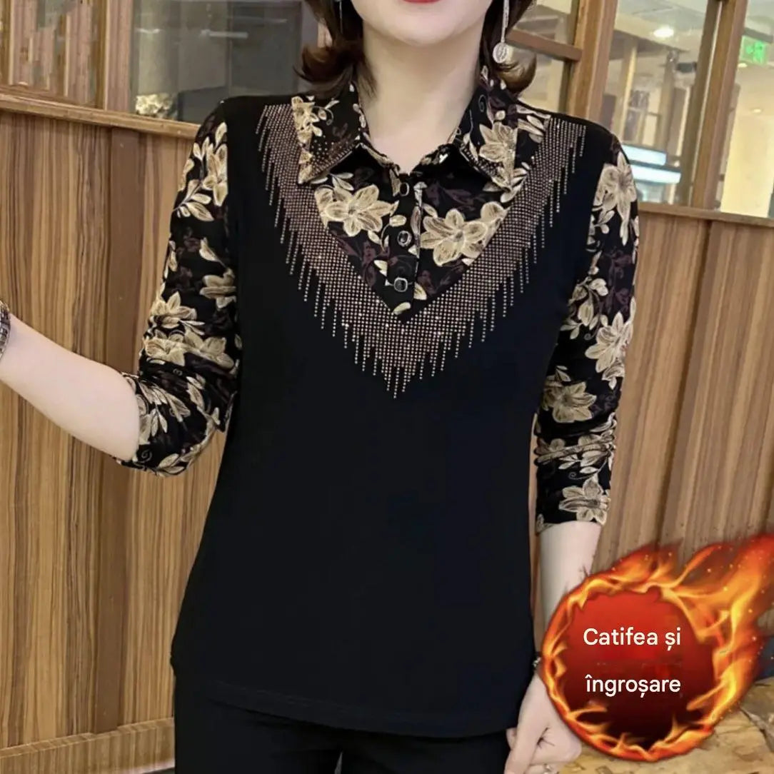 2024 nowe modne, przeszyte, drukowane bluzki z długim rękawem