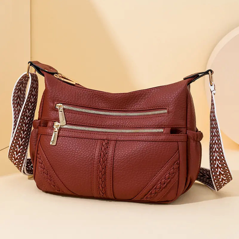 🌈Wielokomorowa damska torba z miękkiej skóry o dużej pojemności z paskiem w stylu etnicznym